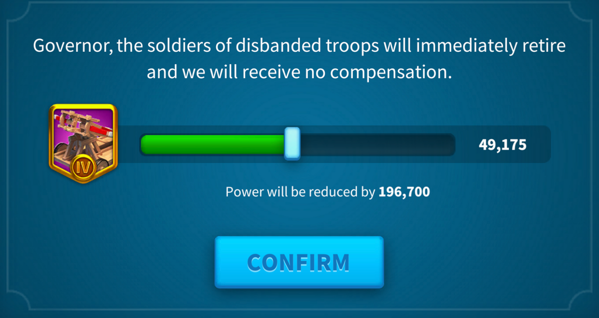 Adjust the slider until you get the desired number of troops or power then hit confirm